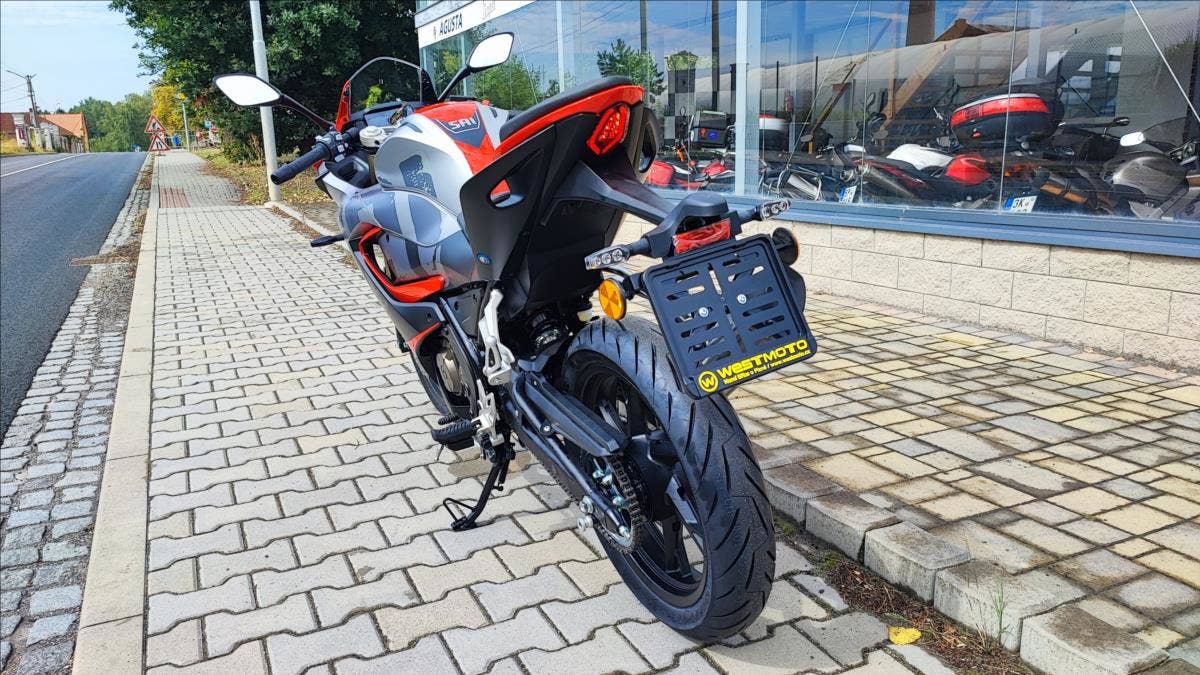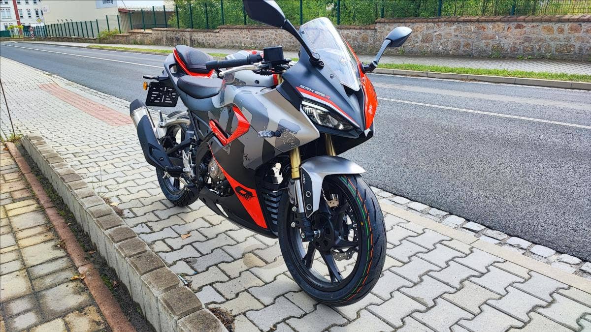 Se svým sportovním designem do nejmenšího detailu je SRK 125R vzrušující supesport pro mladé motorkáře a motorkářky. Je to motocykl se silným motorem